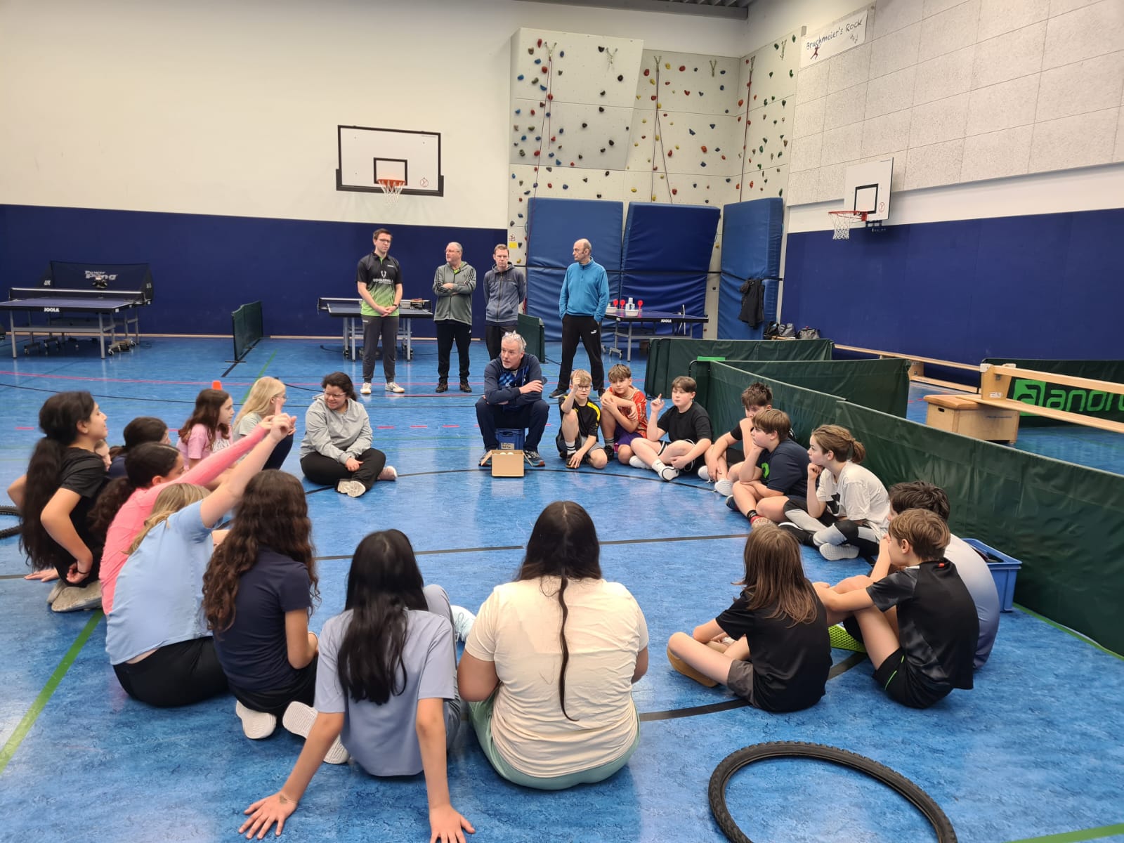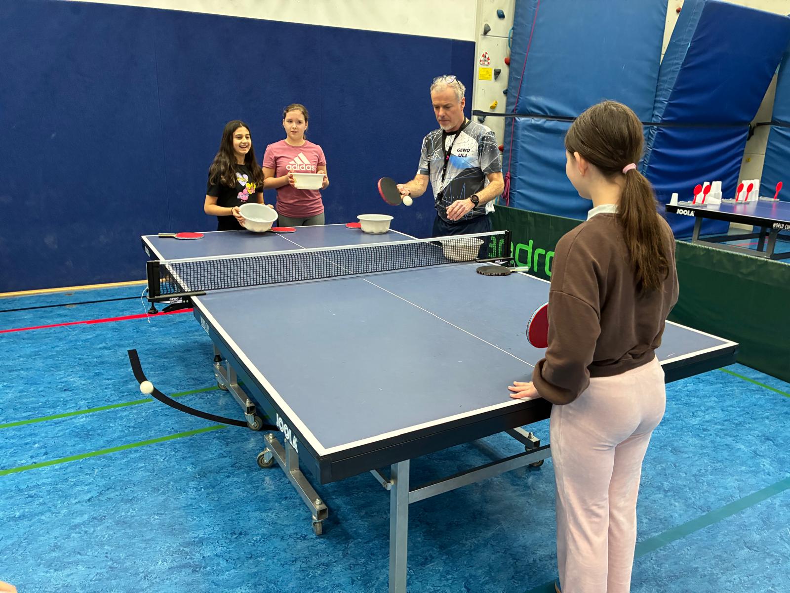 Ein besonderes Sporterlebnis erwartete die fünften Klassen der Jakob-Mankel-Schule: Das Schnuppermobil des Deutschen Tischtennis-Bundes machte Station an unserer Schule und verwandelte die Sporthalle für einen Vormittag in eine kleine Tischtennis-Arena.