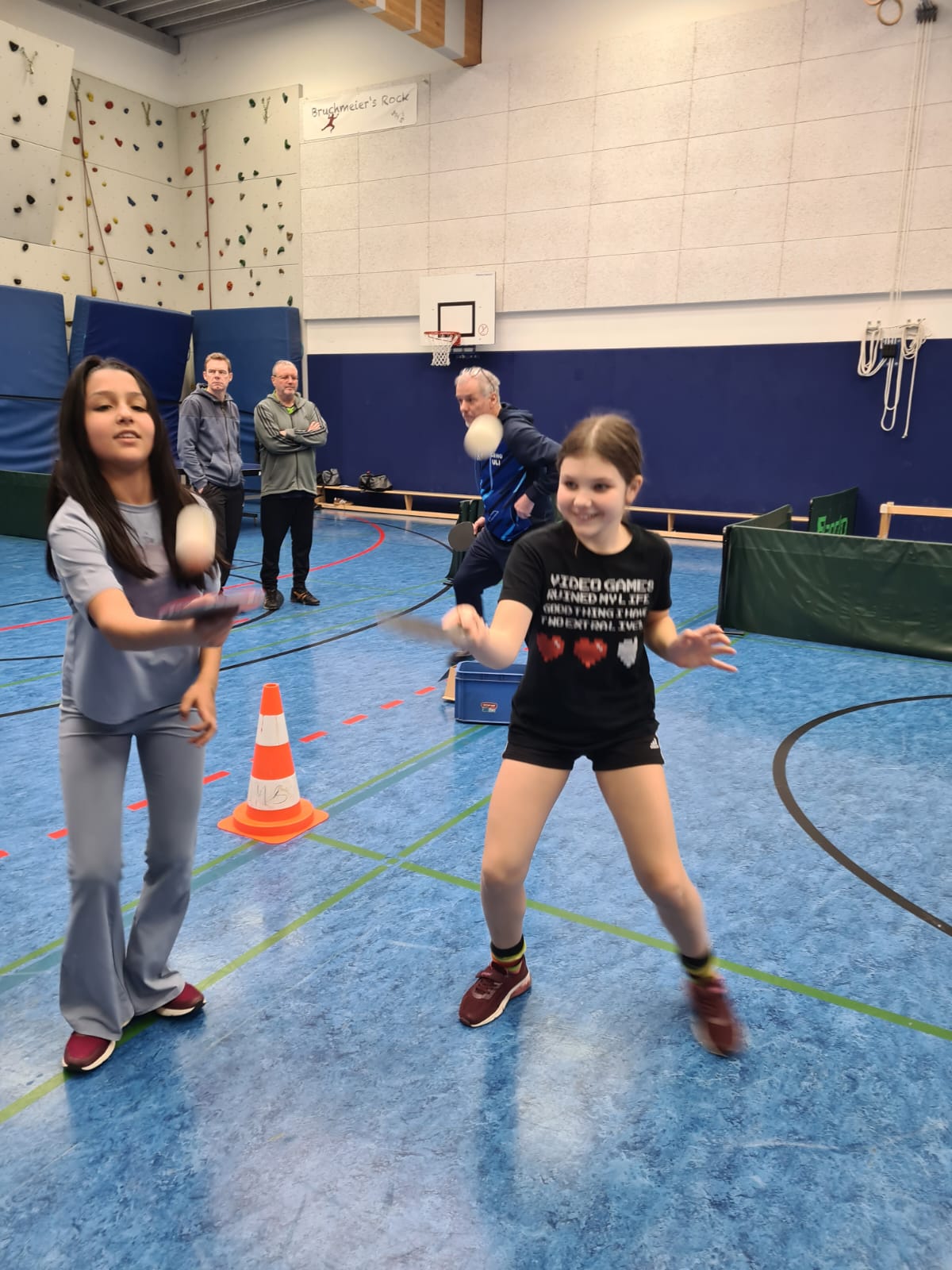 Innerhalb einer Doppelstunde trainierten die Schülerinnen und Schüler an einem professionellen Ballroboter, testeten mit viel Begeisterung ihre Reaktionsfähigkeit, Koordination und ihr Ballgefühl, und der ein oder andere trat sogar gegen die eigenen Klassenlehrer an. Die Doppelstunden vergingen wie im Flug und waren geprägt von Bewegung und sichtbarer Freude am Spiel.